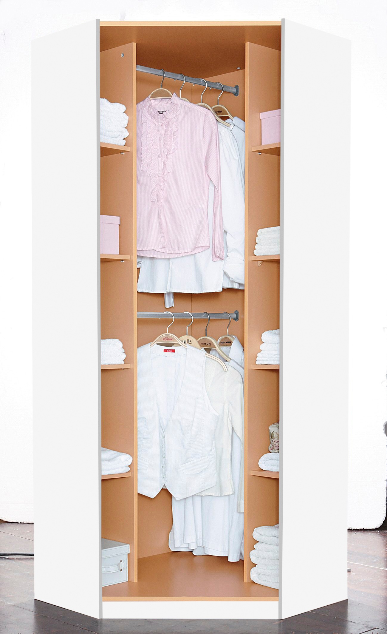 Eckkleiderschrank bilbao 193 x 54 cm, mit aufleistungen beige eckschränke kleiderschränke. Die einzelnen elemente können einzeln aufgestellt und damit individuell dem jeweiligen raumschnitt angepasst. Schrank eckschrank eckkleiderschrank kleiderschrank fichte massiv landhaus. Eckkleiderschrank corner einheitsgröße weiß eckschränke kleiderschränke schränke. Dieser eckschrank bietet viel platz auf kleinstem raum.